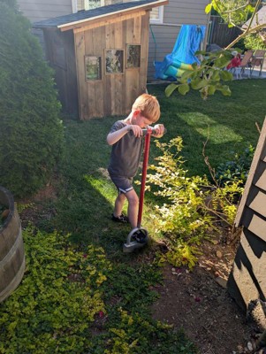 [This review was collected as part of a promotion.] This edger-chopper makes getting straight lines extremely easy! If the ground is soft enough kids can even use it (and they had a lot of fun helping with the yard work!). It is super lightweight and makes my job getting a nice clean edge between the grass and concrete very simple. I have an electric edger, but often find that this handheld one is a lot easier and quicker to just get the job done without getting a bunch of equipment out.