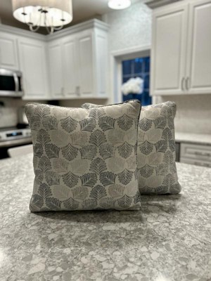 MARTHA STEWART Modern Banana Leaves Indoor Outdoor Decorative Pillow 2-Pack, UV Fade Resistant, Water Repellent, Warm Grey, 18"x18"