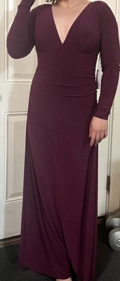 Women's S3 Shirred V-Neck Long Sleeve Sculpting Maxi Dress with Built-In Shapewear - Cherry Mocha