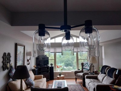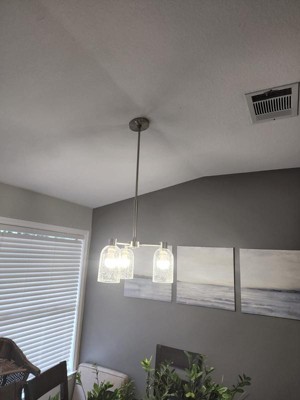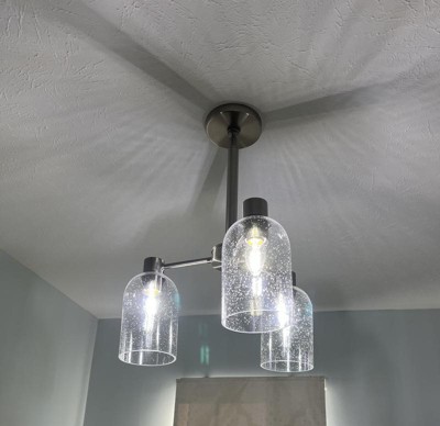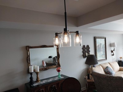 [This review was collected as part of a promotion.] We needed a cute light for our laundry room and the glass on this light happen to match all the other lights in the house. I will say we didn’t use the whole bar that comes with the chandelier. We were using it with 8 ft ceilings and didn’t want it to hang down all the way. So it is adjustable. It turned out great and I would absolutely purchase from Hunter.