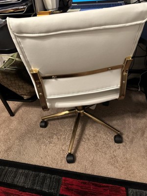 [This review was collected as part of a promotion.] Martha Stewart’s Ivy Upholstered Office Chair in White/Polished Brass is nice. This chair is easy to assemble with easy to follow instructions and is not only super comfortable but also very luxurious looking. I like that it has wheels. I would highly recommend this chair!