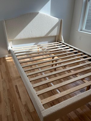 [This review was collected as part of a promotion.] I am honestly so impressed with this bed , the off white boucle fabric looks absolutely beautiful in person and gives such a soft , modern touch to the room . The frames feels very sturdy and well made , and the quality is definitely there . It was packaged well and feels solid when assembled. I love the elegant headboard design-it really elevates the whole space. I am very satisfied and would definitely recommend it 🤍