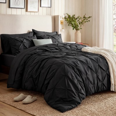 Queen Bed in a Bag Set, 7 Pieces Black Pintuck Comforter with Sheets and Shams Black Queen