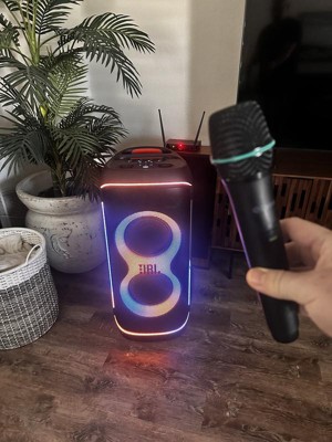 [This review was collected as part of a promotion.] This JBL PartyBox 720 is absolutely amazing! Yes, it’s big and heavy (thank goodness it has wheels), but the sound is so full, clear and easy on the ears…even at loud volumes. We used it for our end of summer pool day and the music filled the whole backyard without being obtrusive. It continued the music on one full battery charge for OVER 10 hours and still could keep going!! Plenty of battery left. We plugged in our wireless karaoke mics and had a karaoke night too. When opening the back flap to access the input, there’s even a light inside for those dark dance parties. Being able to adjust the mic volume, eq, and reverb (echo) right on the Party Box is so convenient. Everyone loved the light show from the Party Box too! Added so much fun to the night. Bluetooth connected flawlessly, and the app was fun to control even deeper…eq settings, light settings, and more. We are so impressed. The pure power of sound, bass boost settings for inside and outdoors, and crisp, clean mids and highs are a pleasure to hear. Since it is such a big unit, though, it’ll be for home use only. We will take our small party box for tailgating, and travel (it sounds amazing too). If you want high quality sound, excellent eq, light, and mic control (I even plugged in my guitar and pedalboard and was impressed)…this is for you. Keep in mind it’s large and you’ll need a place to store it. Soon we will be using it for a portable PA for a school event, and I expect it will work great.
