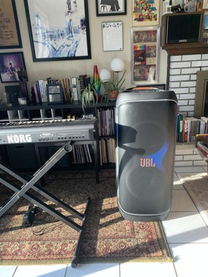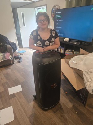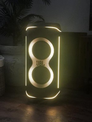 [This review was collected as part of a promotion.] Cannot express enough how much of a powerhouse this PartyBox is. In all honesty I only saw myself turning the volume up to full blast a handful of times because at 1/4 and above is more than enough for any decent size gathering. The pair of 9” subwoofers in combination with the tweeters deliver that JBL signature sound that fills up any space you wheel this speaker into. I recently used this for my sister in law’s birthday party and all the adults along with my nieces and nephews found themselves just staring at the lightshow at times. Which can be cycled through many different presets on the speaker itself, or get customized effects through the JBL PartyBox app. Along with customizing you also get EQ calibration, mic controls, sound effects, along with other fine tuning capabilities. My only complaint for lack of a better word is that the sound effects were at about a 2-3 second delay at times. But I’m sure that would be mitigated through a software update soon. Also, even with knowledge of the specifications on this speaker, it’s a lot taller and heavier than I thought in person. So might want to take that into consideration for storage and transportation purposes. All in all, I cannot recommend this speaker enough for anyone that hosts a lot of parties, DJ’s, or just likes to be the person in the group that brings the party over!