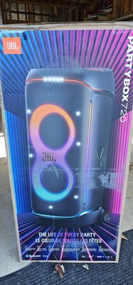 [This review was collected as part of a promotion.] The JBL PartyBox 720 is a massive party speaker that blasts out music with huge sound and astounding fidelity. The PartyBox is around 3 ft tall and has wheels that make it easier to lug around, with its controls on the top and all the ports at the back. The speakers sounds amazing and can blast sound loud enough to annoy neighbors three houses down, while still preserving the sound quality. The lights on the front of the speaker add some fantastic vibes to your party and the speaker can additionally be paired with the JBL PartyLight to turn that up even further (shown in video). The battery life has proven fantastic so far, and the fact that its waterproof means I'm not worried about bringing it to the poolside. All in all, an excellent addition to any party or celebration!