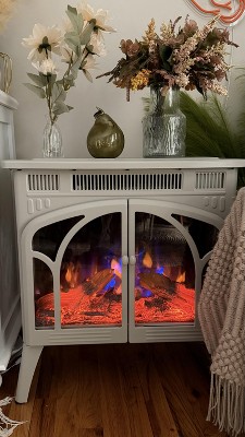 ZAFRO Electric Fireplace Heater 25", Cathedral Stylish, Different Flame Effects and Log Set Colors, Adjustable Brightness