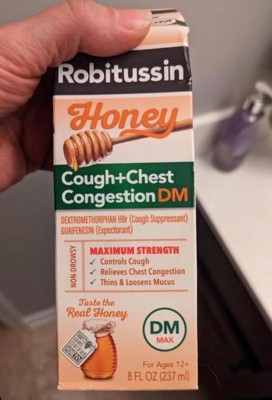 Robitussin Adult Honey Nighttime Cough DM Liquid, Nighttime Cough Suppressant & Chest Congestion Relief, 4 fl oz
