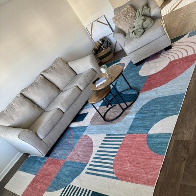 Soft Modern Low Pile Washable Runner Rug for Hallway Entryway Kitchen, Blue Multi, 2'x6'