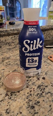 [This review was collected as part of a promotion.] I'm sorry, but I did not get a picture of this actual product. Why? Well, my husband tossed it. My son and I did try it in a glass just as it was. I wont lie, I had high hopes for this product. I love a good glass of chocolate milk. But I did not taste the yummy chocolate. Instead, I tasted artificial sweetener. I know the packaging mentions no artificial sweetener, but that is the after taste we were getting. Now, I will say, pouring the chocolate milk into a glass was very satisfying. It looked so thick and creamy. I just wish the taste lived up to the look. Sorry, Silk. But I don't think we will be buying the chocolate milk again.