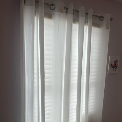 The curtains look so elegant in my daughter’s room! They really elevate the look, they’re sheer and so they let a lot of light through, which is really nice but also they provide privacy. They were really easy to install. You just thread the curtain rod through the grommets and it just looks so nice. They have a nice year Sheen to them.