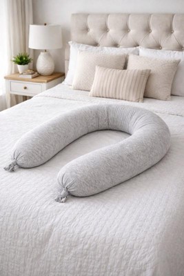 [This review was collected as part of a promotion.] This adjustable pregnancy body pillow is so cute. I love the grey color and soft. You can untie it and take out the stuffing to adjust it to your liking. It holds its shape well and can be moved to your body to fit for comfort. Smooth and soft firm body pillow. It will also help with back pain to wrap your legs around.