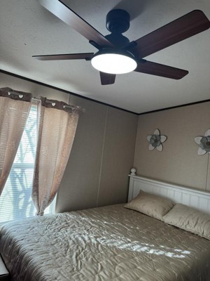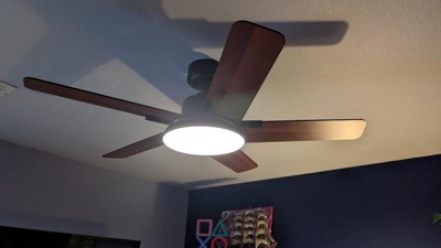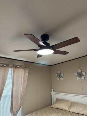 This was pretty simple to assemble, and the directions were very clear. The quality seems good, and everything fits together snugly. I love the look of the wood grain and the rich shade of the fan blades. The light itself is a great size, and I like the different variations from cool to natural. The fan itself doesn’t wobble or make much noise. It looks sleek and adds a nice touch to our master bedroom. I love that there is a remote and an app. It really is a game-changer.