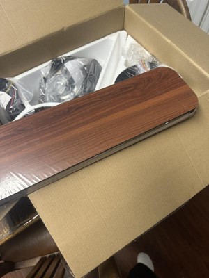 My husband and I have installed many ceiling fans in the past ten years, at least 8. This by far has been the most difficult ceiling fan we have ever installed. It comes with a receiver box that you’re supposed to slide into a slot that houses all the electrical wires, but it is a very tight fit. In the process of sliding it into place, a portion of the wiring fell off. It broke in such a way that it is now unusable and will be put in the trash can.