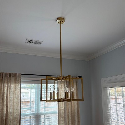 DAKAFUL Geometric Chandelier with Iron Build&Square Candle,6-Light Adjustable Height, Ceiling Light Fixture for Dining Room, Kitchen, Hallway (Black)