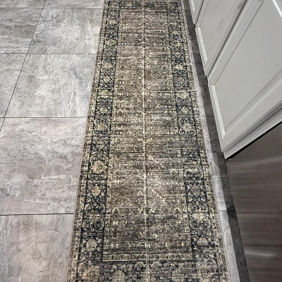 Floral Kitchen Rugs 2x6, Washable Non Slip Distressed Print Entryway Mat Ultra Thin Low Pile Runner Rug for Hallway Laundry Bathroom