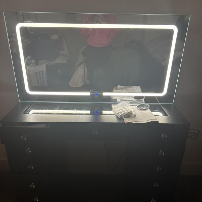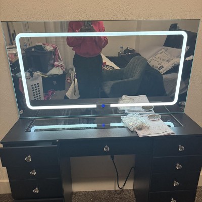 My daughter loves this vanity mirror with lights. The lighted mirror is and 11 drawers makeup vanity desk is great. Also very sturdy.