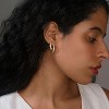14k Gold/Silver Double Hoop Huggie Earrings | Hypoallergenic Chunky CZ Earrings with Flat Back for Comfortable Stacking Gold One Size
