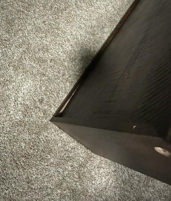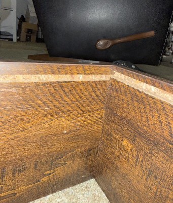Looks nice but is already falling apart and my husband hasn’t even fully assembled it yet! I took pictures of the finish that is coming off of the sides but not pictures of the finish coming off the legs or the top board that my husband had to glue back together.