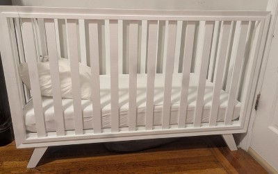 I love the clean aesthetic of this crib. it fits right into the room decor and the white color makes for a pretty but low profile look.