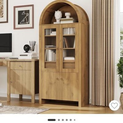 COZONY 71" Tall Arched Pantry Cabinet with Acrylic Glass Doors, 2 Drawers & Adjustable Shelves, Modern Display Storage Hutch for Dining Room