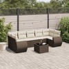vidaXL 8 Piece Patio Sofa Set with Cushions Brown Poly Rattan - Black and Cream