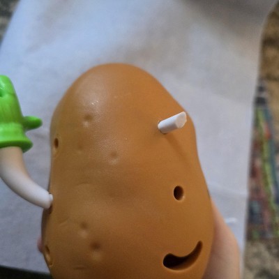So cute but it breaks very easily. The pegs have snapped off multiple pieces. Also some of the pegs are a little bit too large and barely fit in to the potato and end up sticking out awkwardly. We can still use the potato and the pieces that aren't broken with some other potatoheads we have but kind of disappointing.