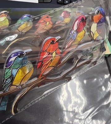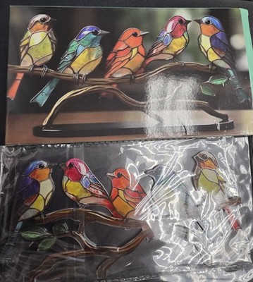 Modern Colorful Birds Ornament, Acrylic Tabletop Bird Figurine, Stained Birds On Branch Decor for Living Room, Bedroom, Desktop, Cabinets, Garden - 1 of 4