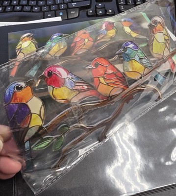not as pictured. I was expecting it to be more like the picture. it isn't. its like a flat printed thing on a stand. the picture looks as though they are 3d shaped birds and they arent.