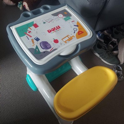 [This review was collected as part of a promotion.] This Activity Desk is awesome, this was a surprise for my little one. It’s spacious, fun for hours. They can write or paint. I would say it’s perfect for toddlers, as they can practice their motor skills. The set is easy to clean and washes easily. This is super durable and will be great until they outgrow it.