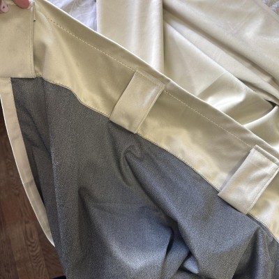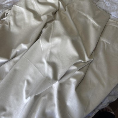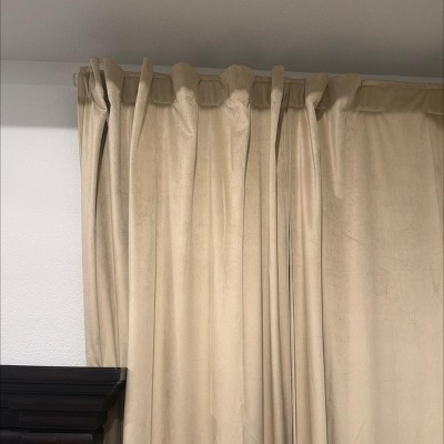I love these curtains! They're so nice; the velvet fabric has a very soft and elegant texture. The beige color is gorgeous and goes perfectly with any decor, especially if you like the bohemian style. They're long (274 cm), which makes them look very beautiful and sophisticated in the bedroom or living room. Plus, they're blackout and block out light really well, creating a cozy atmosphere. I definitely recommend them; they look beautiful and seem to be of excellent quality!