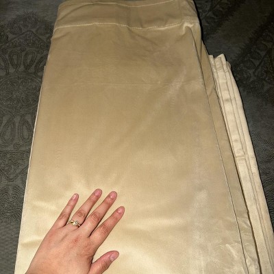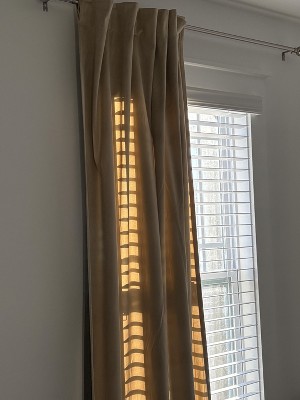 I had ordered moss green velvet, but they showed up in a gold color! At first I thought I would bring them back to Target, but then I hung them up and I absolutely love them!! Excellent quality velvet, substantial fabric, not shiny or cheap feeling. The back tabs are well made and allow the curtains to slide smoothly on the rod. I would definitely get a 1-in curtain rod though, so it is substantial enough because the curtains are heavy. I was going to buy curtains at pottery Barn which were very similar but four times the price. These are perfect!