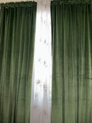 I absolutely love these Moss Green Velvet Curtains! The 108” length makes the room look taller and more elegant, and the velvet fabric feels thick and luxurious. They do a great job blocking out light, which is perfect for better sleep and added privacy. The back tab design also makes them super easy to hang. Beautiful color, great quality, and totally worth it!