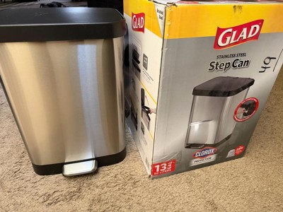 Glad Step Trash Can, Soft Close Lid Bin with Odor Protection, 13 Gal, Stainless