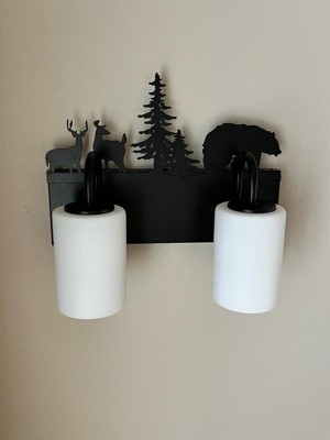 VAXCEL Acadia 31.5 in. Wide Bronze Rustic Wildlife Bathroom Vanity Lighting Fixture with Nightlight, Frosted White Glass Shade, 4-Light