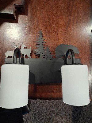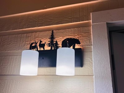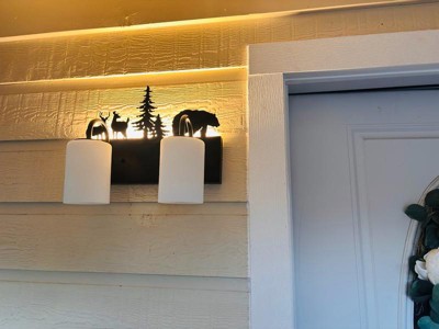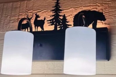 [This review was collected as part of a promotion.] Just put up this lovely Vaxcel Acadia light in my hallway and I love it. It is for a bathroom but I wanted something in my hallway. The feature I like the most is the nightlight it has that illuminates the design on the wall. The has a bronze finish and and frosted white sconces. The quality that this is made of is excellent. Love the wildlife design.