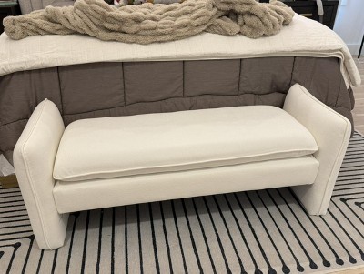 Our bench arrived significantly damaged. The bench was punctured in transit, so we had to return it. But this isn't a review about shipping. The bench was a beautiful ivory color and I loved the fabric. It was soft to touch and the texture was unexpectedly awesome. It reminded me of corduroy, but without the pattern (a bit different than velvet). it looks like it would have been really easy to assemble and it seemed well constructed. I don't know if I'll order it again, because it was shipped via FedEx, which we generally always have problems with in our neck of the woods.