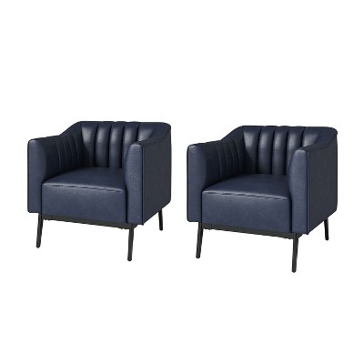 Wallace Genuine Leather Armchair with Nailhead Trims and Solid Wood Legs丨HULALA HOME-NAVY