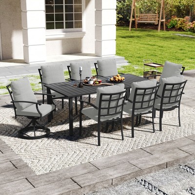• Suitable for outdoor patios: Perfect for various outdoor settings including backyards, balconies, and poolside areas. This adaptable 9-piece set creates an inviting atmosphere for everything from family dinners to social gatherings.