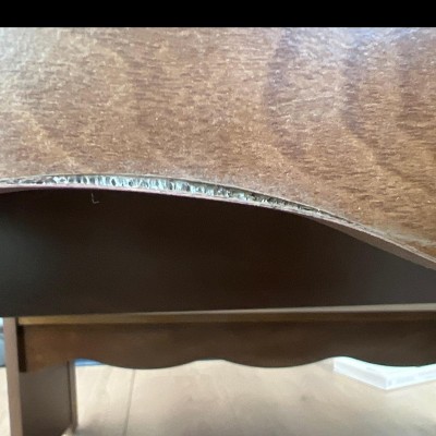 Beautiful benches and table in brown; however, upon assembling noticed multiple cracks, chips and glue peeling off of two panels.