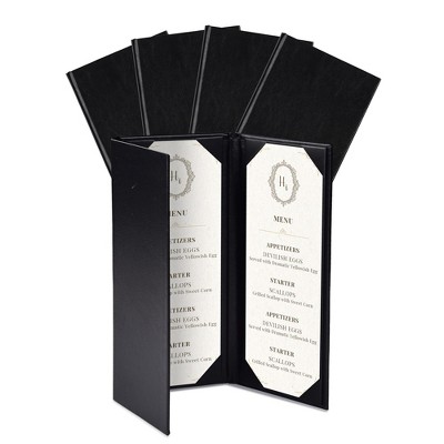 Crafted from high-quality leatherette, these holders are built to last. 4 corners on each panel with slots allow you to effortlessly insert the menu