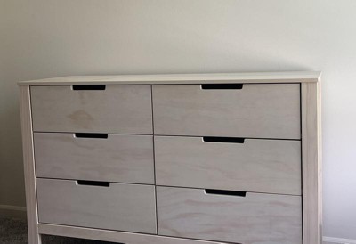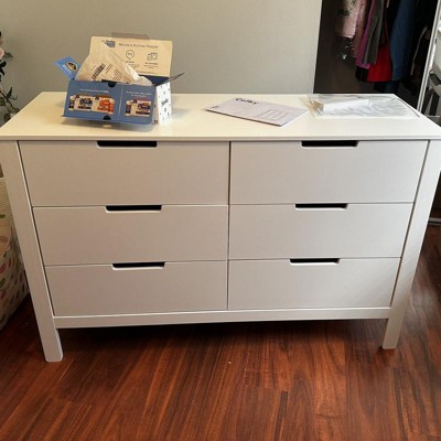 *Showed up broken* This dresser showed up with two of the drawer rollers cracked in half, which causes two drawers to stick and sit off centered. Five out of the six drawers also do not line up perfectly when assembling even though there are pre-drilled pilot holes. This leads to the drawer bottoms not being able to slide into the slot all the way causing the drawers to not align properly. Overall, the dresser would be decent for the price if there were no issues, but the one that arrived for us is lacking in quality. I expected better from the Carter’s by DaVinci brand.
