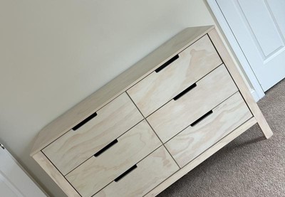 If you value your sanity at all do yourself a favor and find a different dresser. First, the sheer amount of tiny particles of styrofoam that come in the package should be a crime. Unboxing (and subsequent vacuuming) alone took a couple of hours. It's so cheaply made that you'll have a piece lined up perfectly and once you start securing with the screws everything goes side ways. We haven't even used it yet but I regret this purchase so much.
