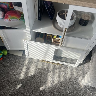The cabinet door broke off in less then a month. They will not replace the door. The particle board is very cheap. Hardly used it and the material is so cheap. Took a while to put together. Really sad because the cabinet was beautiful