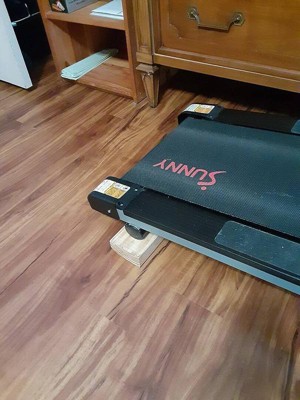 I've had my Sunny manual treadmill for nearly a year. It is a great value. I hop on several times a day. To reduce the stress on my 95 year old arms, I slip a short length of 2x4 lumber under the rear supports. Works well.
