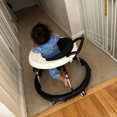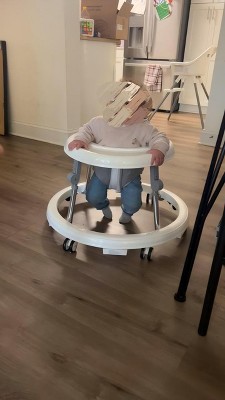 I love this Walker, it’s glides on hard floor and carpet very well, my baby loves running around in it! I feel like he’s safe in it. It’s super easy to store because of how small folds up
