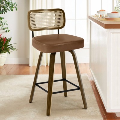 Bekrvio 29" Swivel Counter Height Bar Stools Set of 1,Mid-Century Modern PU Leather Upholstered Kitchen Counter Pub Chairs, Saddle Brown