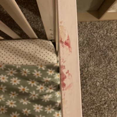 We really liked this crib at first. The design is simple and gender neutral and it was spot on to what we wanted. The drawer is also a nice feature for limited storage spaces. However, after 9 months of use, our baby bit a chunk of wood out of the railing. It’s normal for babies to gnaw on the crib and teeth marks are a given. We use this crib only for naps and bedtime and we share our room with the baby so as soon as she’s up, so are we. She’s never left in her crib for extended lengths of time and we check in often and are always checking our baby camera. Somehow, within the hour that our baby was in her crib during her nap, she bit a chunk out of the crib. An actual chunk that I had to fish out of her mouth. The wood in that spot is splintering apart and the raw and very rough wood is exposed and so I’m trying to find a solution to this. We’ve had to move her to the pack n play and this crib is now sitting off to the side of the room and is no longer being used. Given that this is a convertible crib, we intended to use it for quite some time. Ideally, 5 years was the goal. I’m pretty surprised that a crib at this price is made with this wood material that can apparently be chewed off in chunks in a very short window of time (considering the baby was in the crib for a nap for no more than an hour and she was sleeping almost that entire time). Point being, she wasn’t awake in there for really much time at all since I too was in the room (again, we room share) and I got up as soon as I heard her stirring. And to my disbelief and concern, when I go to get my daughter from her crib I see wood in her mouth and notice a chunk is missing and there are his splinters and blood coming from her mouth. I don’t even know what to do at this point because by purchasing this crib, we intended for it to last (safely) throughout its convertible crib to toddler bed lifespan. And after only 9 months of use, it’s become a hazard, we aren’t even using it so now it’s taking up additional space, and we’re left without a crib and out about $300. Again, babies gnaw and chew on things, especially cribs. But with an hour…most of which she was asleep..I just don’t see how a product with this price tag can be easily ripped to shreds posing a very concerning safety risk to our little one.