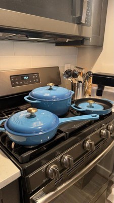 [This review was collected as part of a promotion.] This cooking set has become an obsession in my cooking routine and I have been loving it. First off I absolutely love the color and it’s a really pretty blue color. This cookware is heavy duty and it holds up so well. I literally use these for everything. I like the grill pan for getting things that nice grilled flavor. The Dutch oven has been amazing for one pot meals and anything else I want to use it with. Super easy to clean up all the pieces as well. I love the design and will continue to cook amazing dishes with this set.