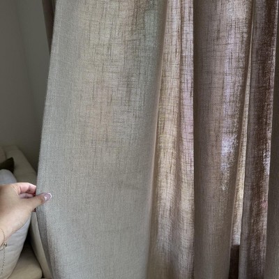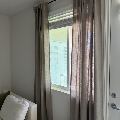 I absolutely love these curtains 🤍 The oatmeal color is neutral and elegant, perfect for a farmhouse or modern style. The linen/burlap-like fabric has great texture and weight, and the 96” length looks beautiful all the way to the floor. They filter natural light without making the room dark and provide privacy during the day. The back tabs also give them a very nice, tailored look. Definitely recommend! ✨
